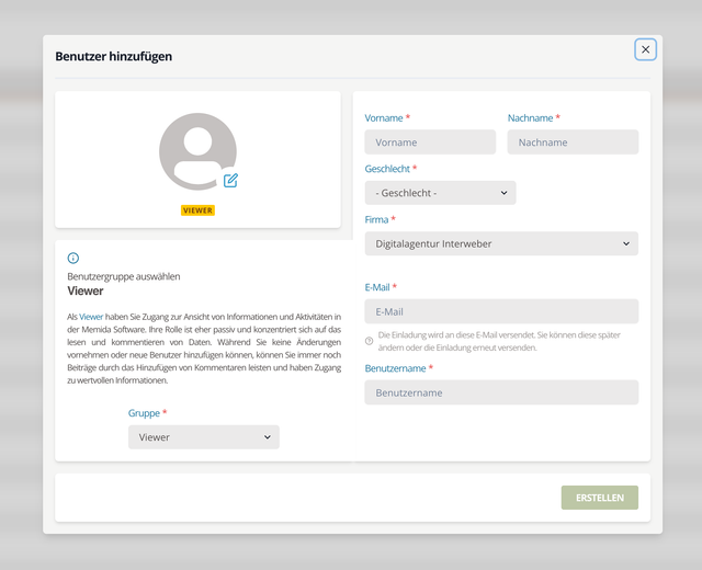 Im Anschluss an das Erstellen eines neuen Benutzers wird die neue Benutzer:in per E-Mail zu Memida eingeladen.