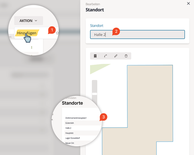 Legen Sie für Ihr Unternehmen festgelegte Standorte an welche später den Prüfmitteln hinzugefügt werden.