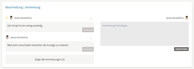 Keep a complete timeline by documenting repairs and maintenance in the Description | Notes section. Entries appear in reverse chronological order, giving you a running history for each device.